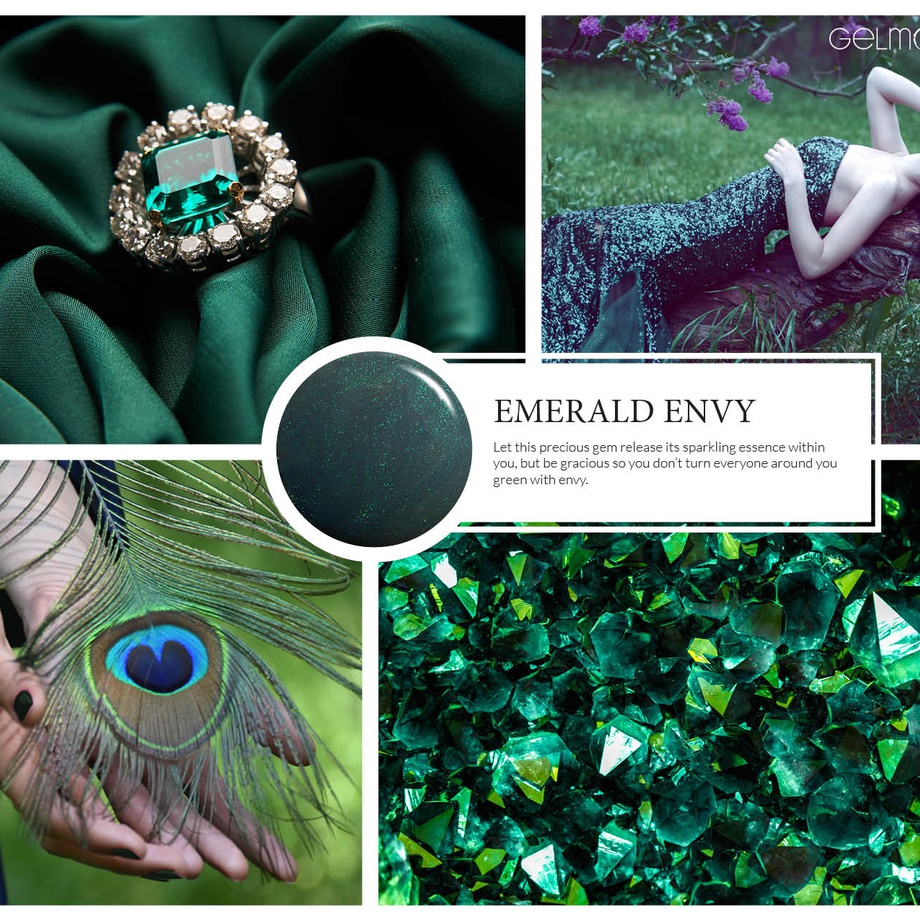 Dark green. Pearl finish. Opaque. Cool undertone.