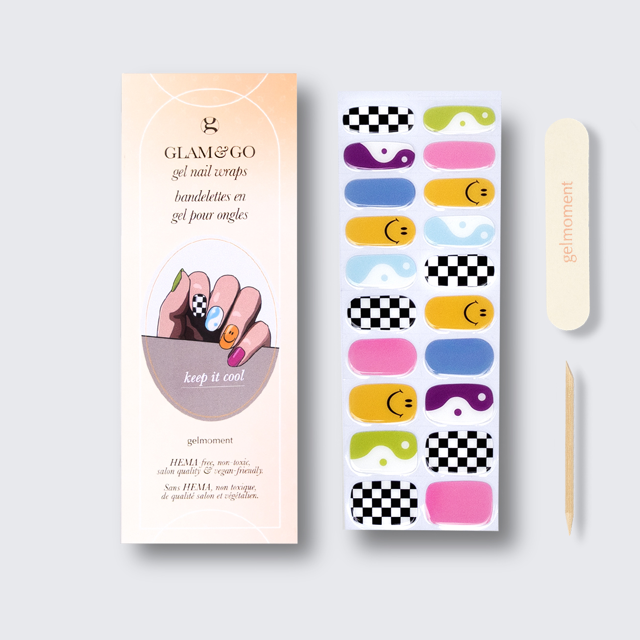 Take a moment to give yourself a head-turning, DIY gelmoment experience in a few easy steps with our GLAM & GO gel nail wraps.