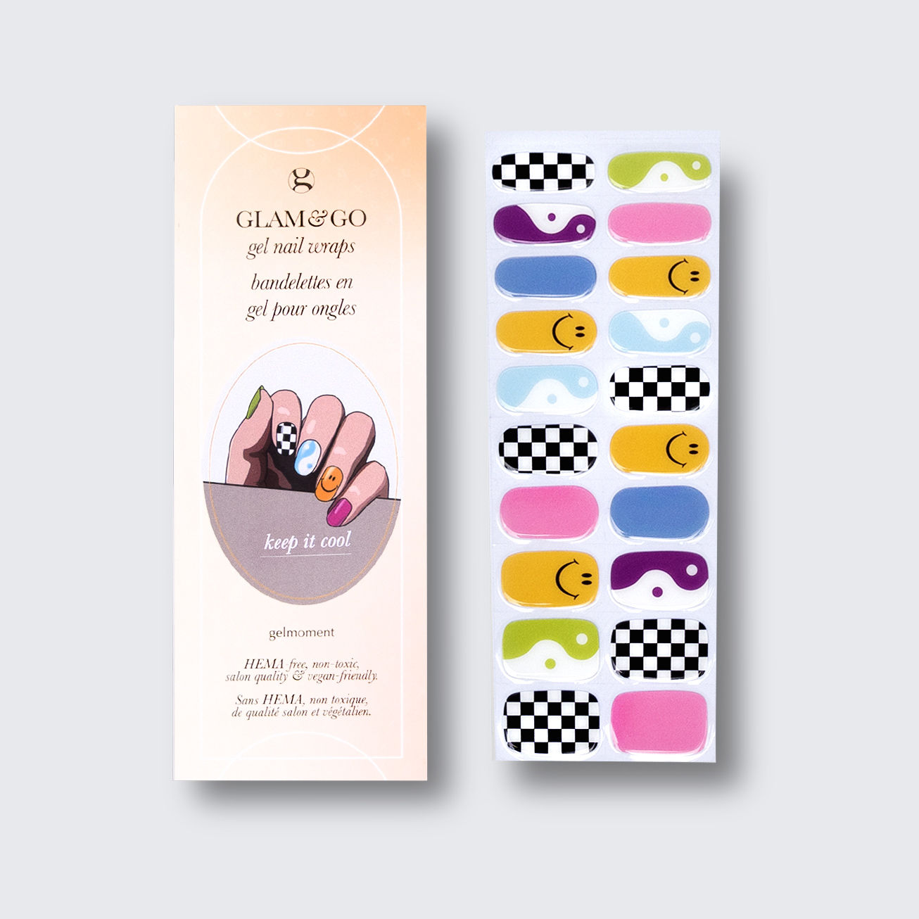 Plus, not only do GLAM & GO gel nail wraps provide the same glossy finish you know and love from our regular gel polish, but they are also HEMA FREE and have a wear time of up to 14+ days.